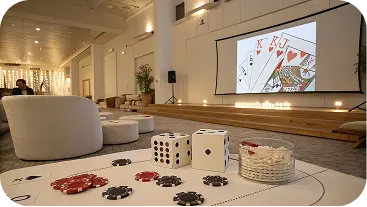 Oplevelser med temaer om spil, risiko og spænding. Vi blander kultur, hygge og let underholdning inspireret af film og bøger.